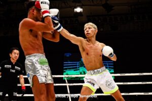 3R、北井は逆転を狙って前へ出るが、ACHIは流し気味にクリンチを多用。追い詰めてもクリンチさ れてしまう北井。 ACHIもジャブ、左ハイを出していき、北井に逆転を許さず。判定3-0で12年ぶりに復帰したACHIが勝利